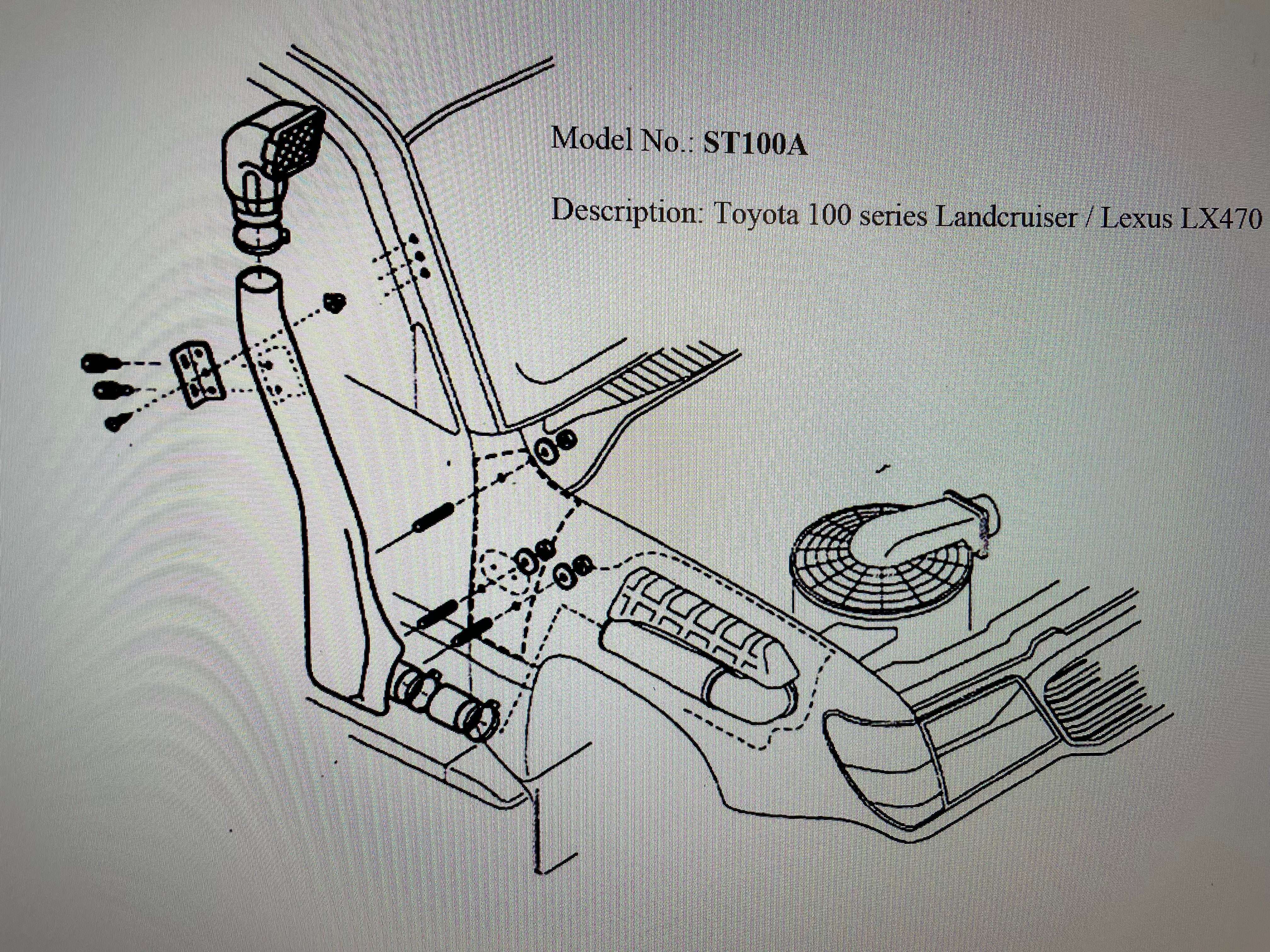 • These snorkels have been made Suitable For Toyota Landcruiser 100,105, Lexus470 Series Year 1998 - 2007 however, it should be fitted by a professional due to the difficulty of installing the snorkel.
