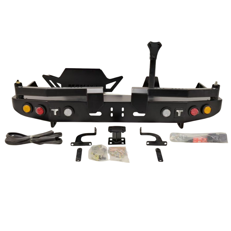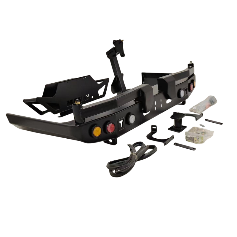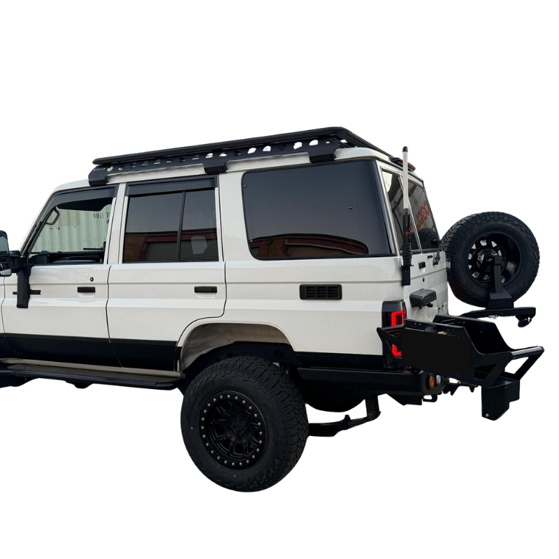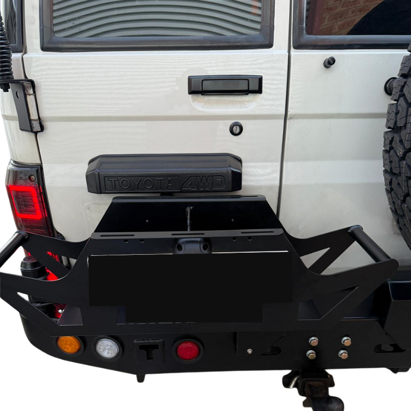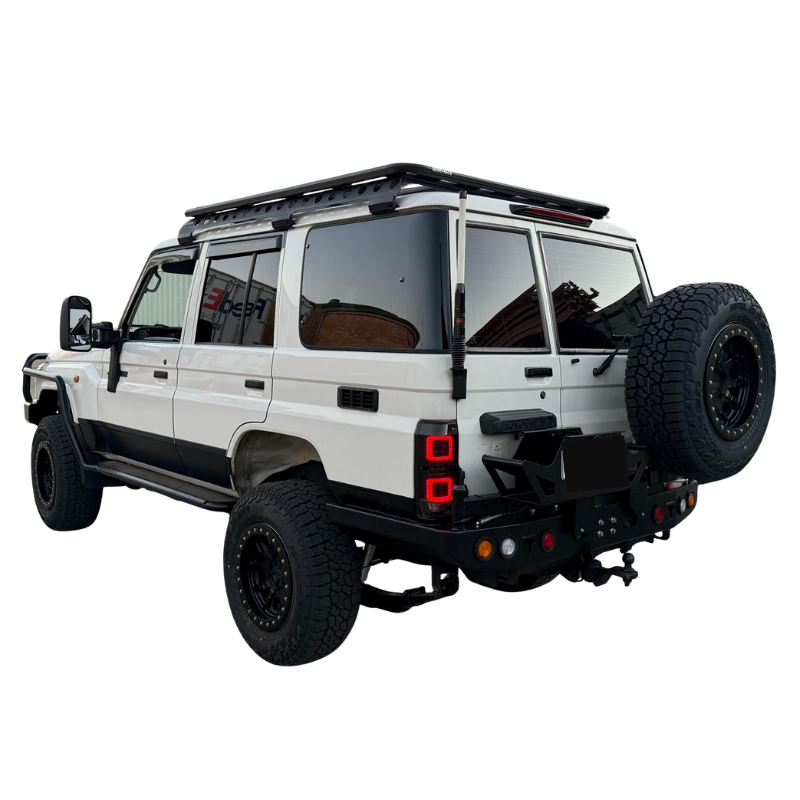 Rear Bar Suitable for Toyota Land Cruiser 76 series year 2007 – 2022 Full Rear bar replacement original rear bar Stay in Place. And Tow bar Included 1 Piece 1 Unit original Rear Plastic Bar will need to be removed, Comes with Led Tail Lights, and Two Swing Arm’s with a Single Jerry can Holder it’s your choice to install this or you can have two tyres on the back or one spare tyre and a jerrycan' the choice is yours.