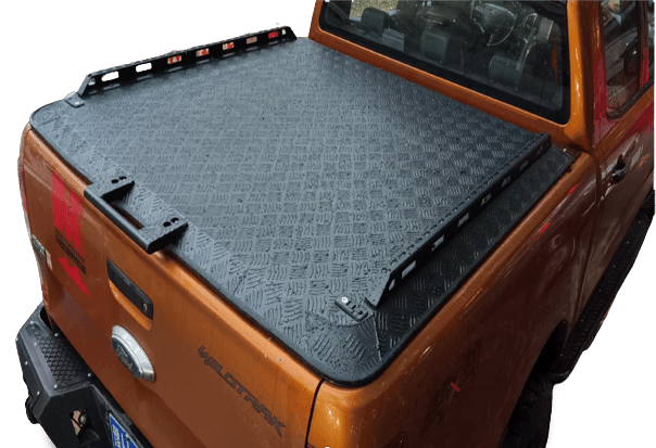 Our latest creation Aluminum Hard Lid's Created and Designed by the best in the Business. Designed for Australia this product comes in the known Tough & Reliable checker plate used similar in our tray and canopies. This product has internal aluminum support before the Top checker plate allowing to Hold 300kg weight distributed evenly as our picture shows. Our Hard lid is well powder coated in black comes with Tough Gas struts for each side its own locking mechanism to make sure your items are will secured. The Aluminum Hard Lid lets your vehicle makes a statement changing your boring Tub to a Tough & Secure place to hold items specially when Your a 4x4 owner Security is everything when your in town or out in the bush. Don't miss out item is limited in stock this product is compatible with Volkswagen Amarok, Ford Ranger, & Raptor, Mitsubishi Triton MQ & MR, Nissan NP300, Toyota Hilux SR & SR5 Isuzu Dmax, GWM Cannon,LDVT60