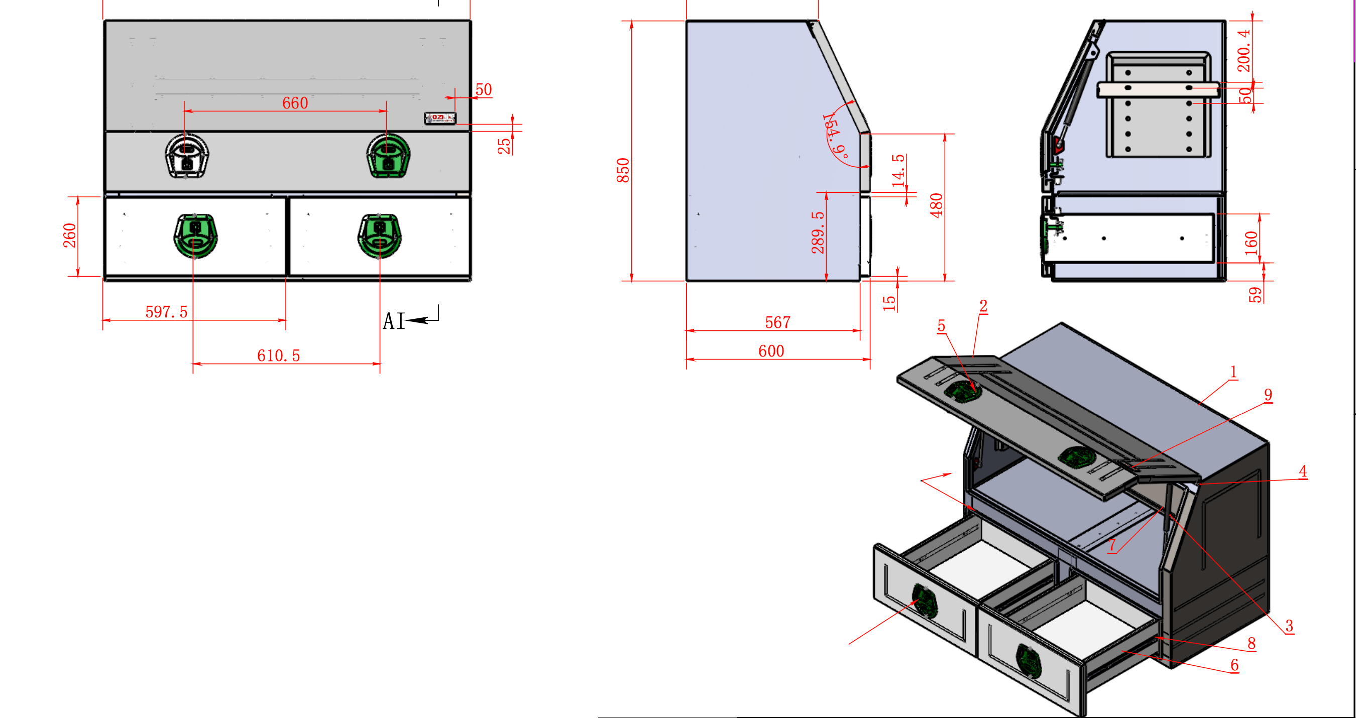OZI4X4 Manufactured from the highest quality materials, and design. This Aluminum Toolbox is perfect for the tradies / Business Owners who want to keep their tray sides up the storage that is perfect for everything when you need to get that Job done.