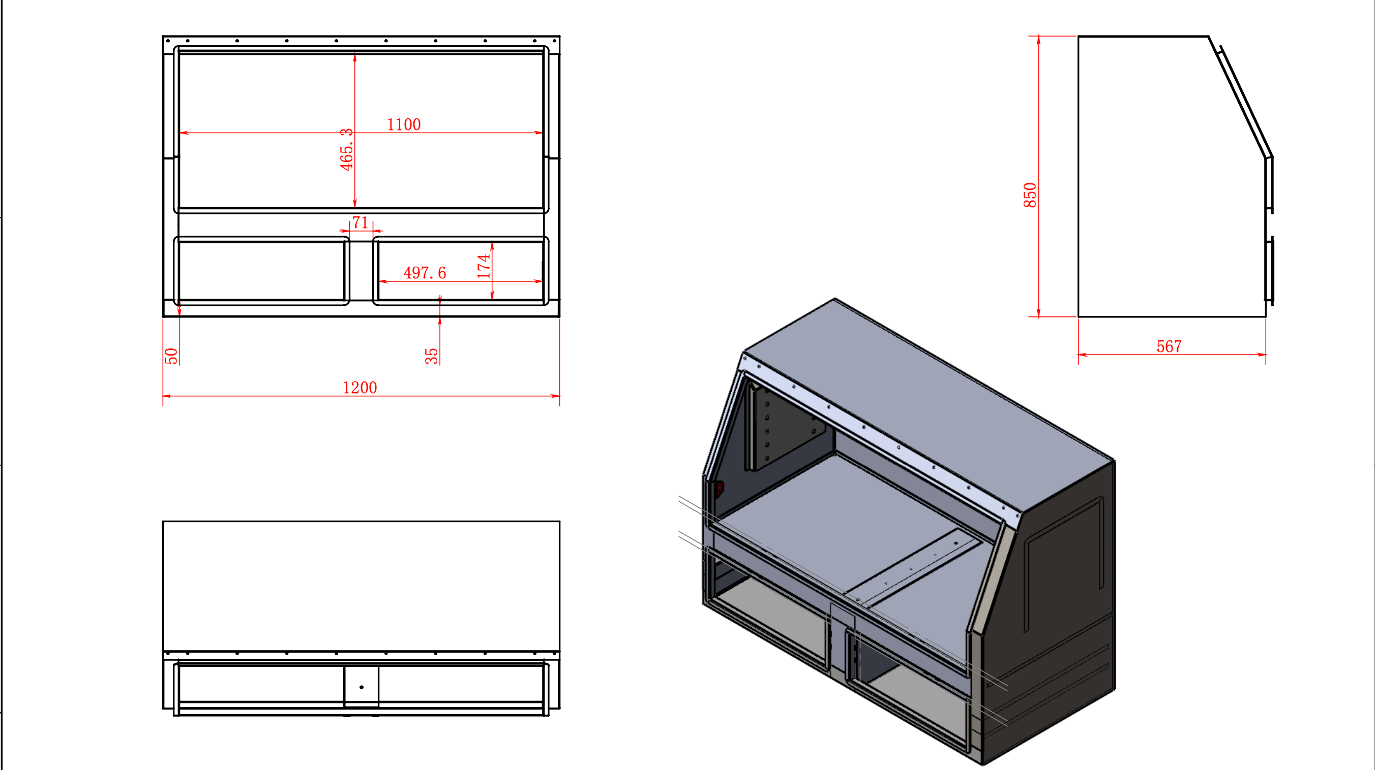 Collections: Aluminium Tray Side Tool Box, Clearance Items Up To 70% OFF Vendors: OZI4X4 PTY LTD SKU: PI25-1-ITEM-13-1200-HALF-DOOR+2-DRAW