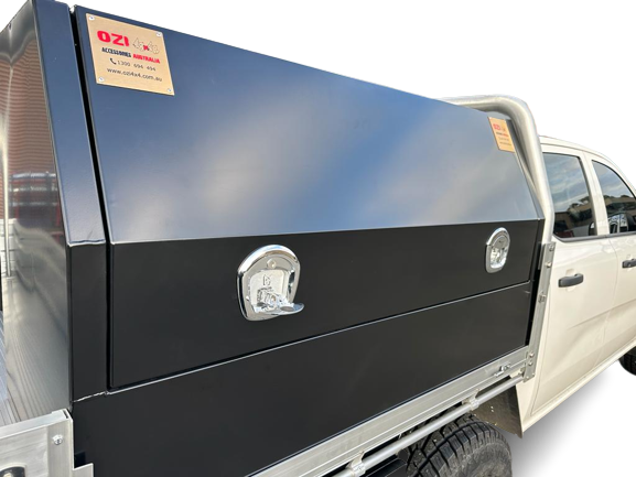 OZI4X4 Manufactured from the highest quality materials, and design. This Aluminum Toolbox is perfect for the tradies / Business Owners who want to keep their tray sides up the storage that is perfect for everything when you need to get that Job done.