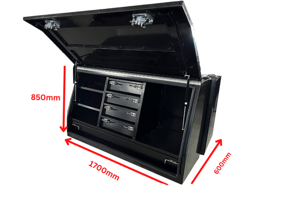 Collections: Aluminium Tray Side Tool Box, Clearance Items Up To 70% OFF, May Pre Tax Sale Products 2025 Vendors: OZI4X4 PTY LTD SKU: PI25-1-ITEM-18-1700-FULL-DOOR-WITH-DRAWER