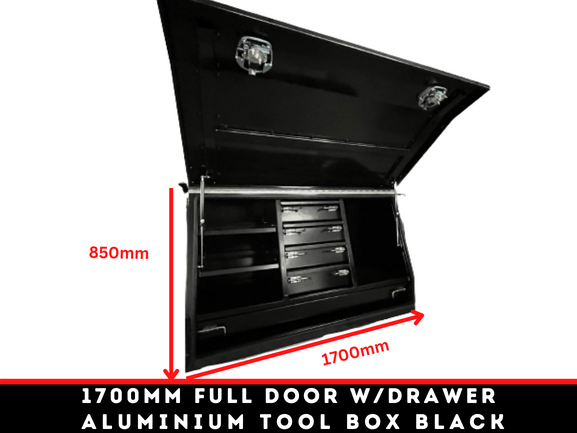 1700MM Full Door W/Drawer- Aluminium Tool Box Black