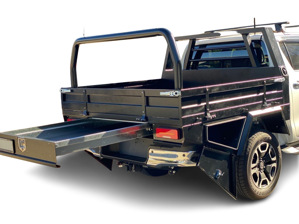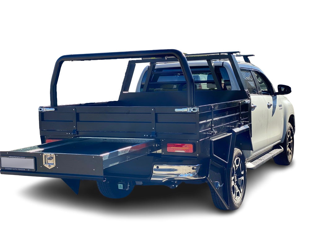 This price is our Fully Loaded Supply Price Comes Black Powder Coated Aluminium Tray, with Trundle Draw, Pair of Under body Tool Box, Ladder Rack , also Water Tank/ Fuel Tank, Tail Lights, Mud Guards, Mud Flaps.