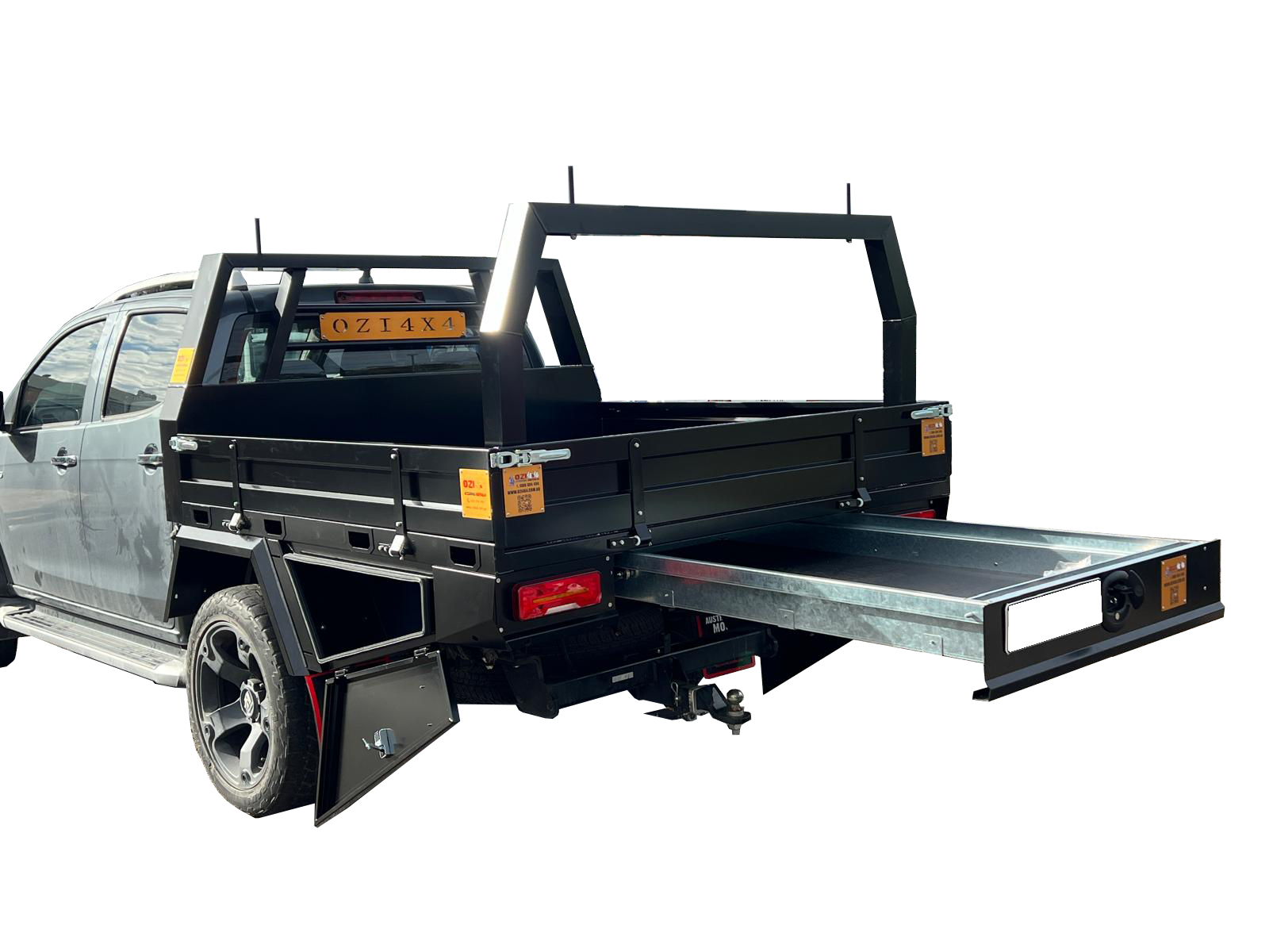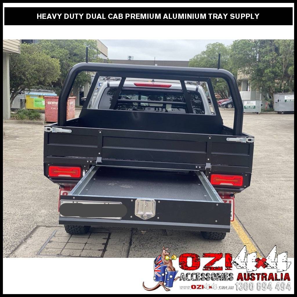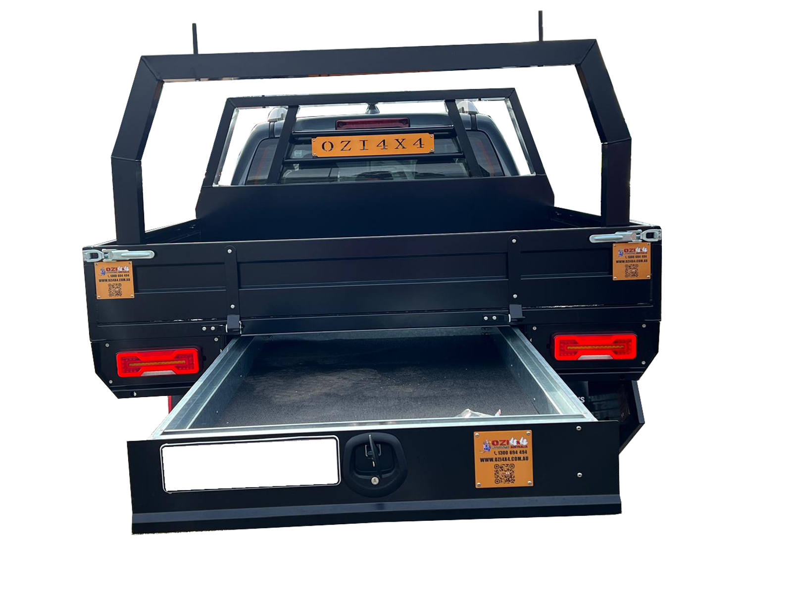 This price is Supply Price Comes with Premium OZI4X4 Design Aluminium Tray Black Powder Coated Trundle Draw, A Pair Under body Tool Box, Rear Ladder Rack, also Water Tank/ Fuel Tank, A Pair of Tail Lights, One Piece Mud Guards, Mud Flaps,