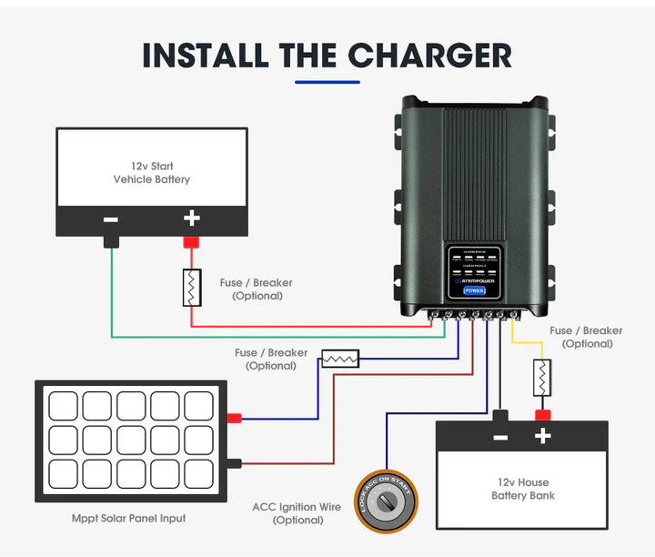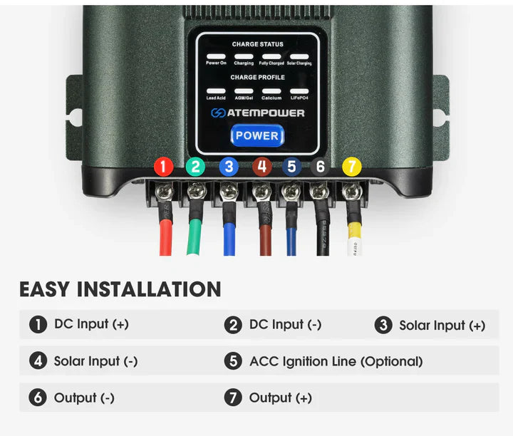 • Multi Battery Selection: This DC to DC charger by ATEM POWER is compatible with Lead Acid, AGM, Gel, calcium, LiFePO4 batteries.