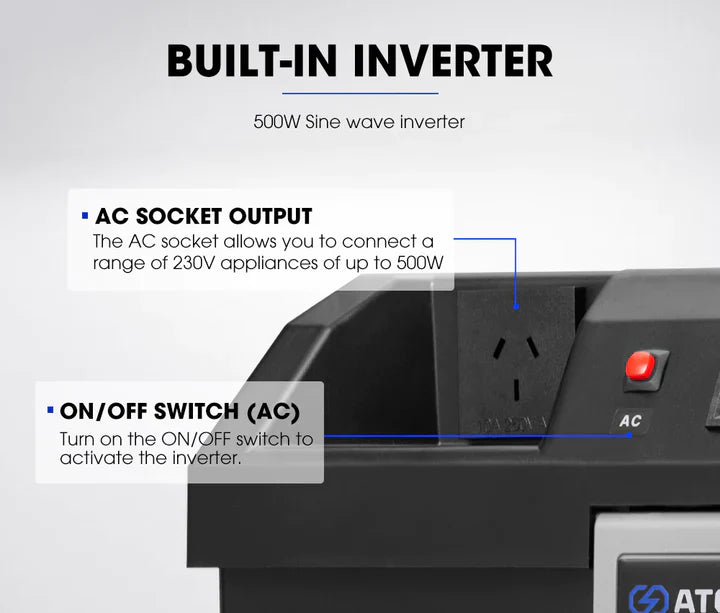 ATEM POWER Battery Box built-in VSR Isolator with 500W Inverter + 12V 100Ah Lithium Battery(Online Only)