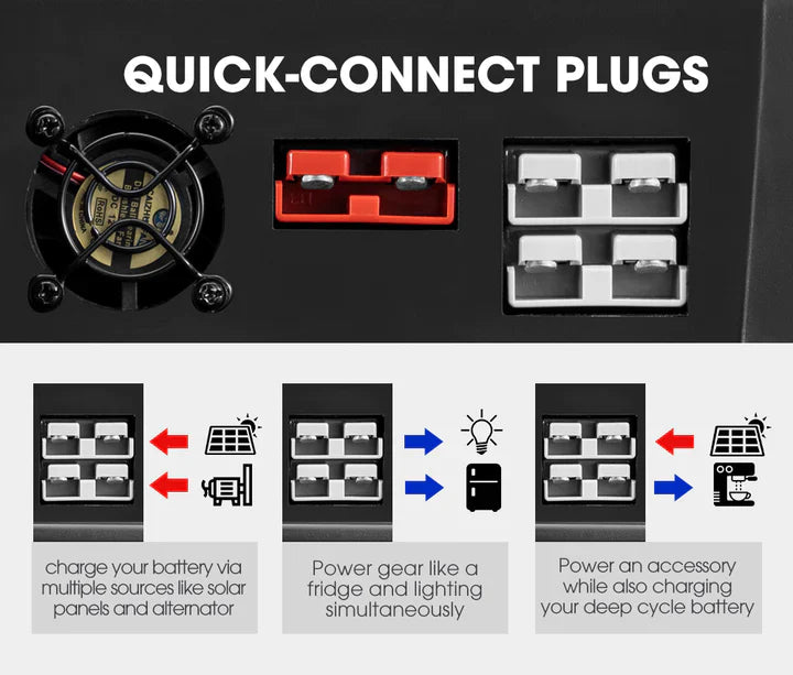• 2 x Anderson Plug Outputs/Inputs (Grey) : 50A