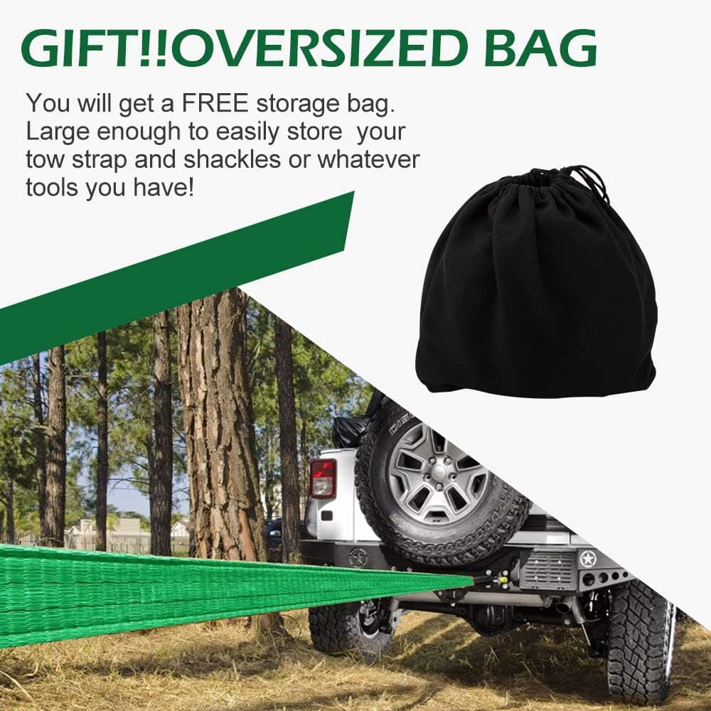 • Heavy Duty Tow Strap: Made of durable UV water-resistant polyester webbing, our recovery strap has a massive 30000 lbs tested strength. And it can withstand extreme loads and extreme temperatures (-40° F to 215° F). Recover your vehicles that are in tough situations such as snow, water, mud or sand.