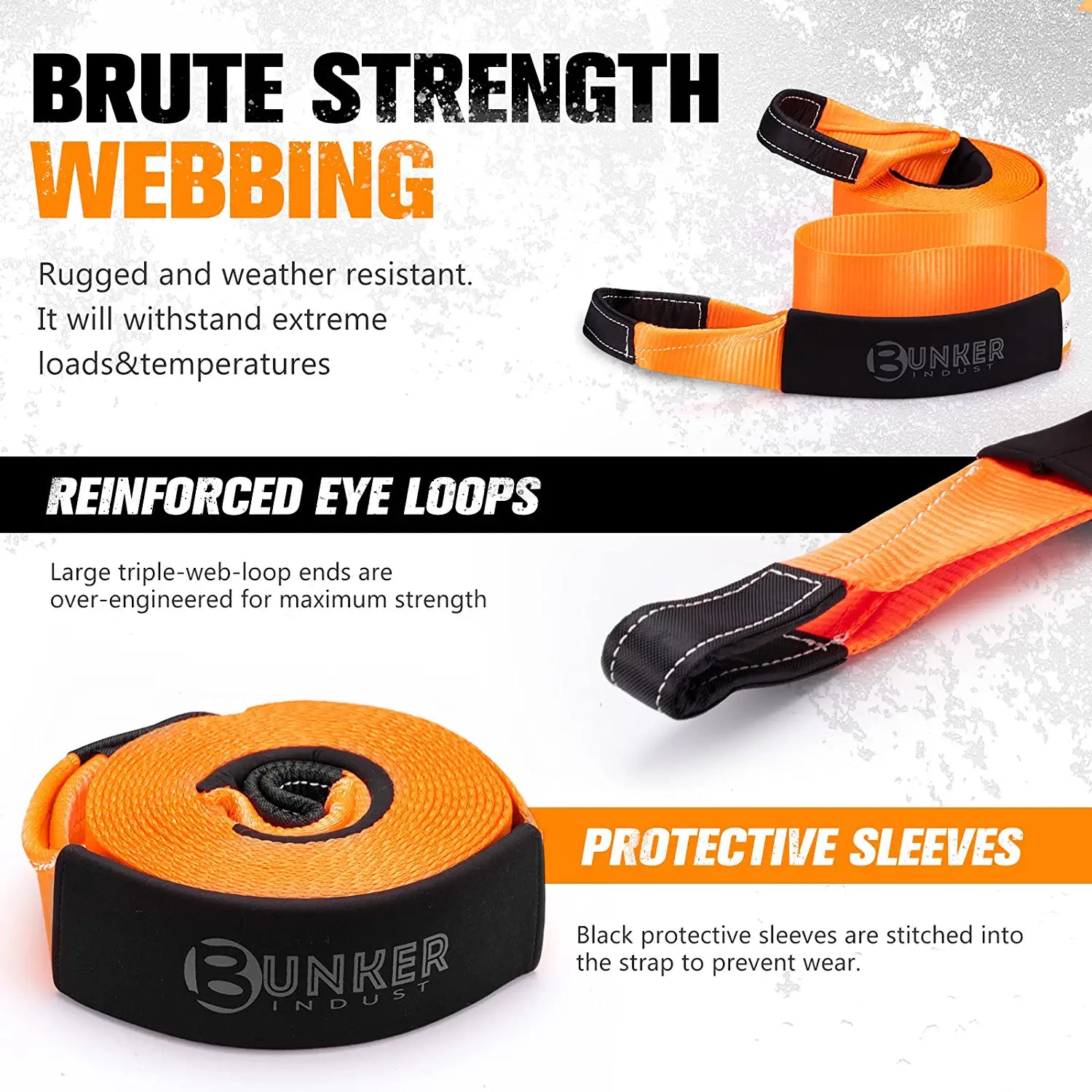• Wear Points Protection: If you are an overlanding enthusiast, a recovery strap is a must-have but finding a recovery strap that will not fray, tear, or wear down quickly is not easy. This BUNKER winch tree saver strap comes with protective sleeves, which are made of durable polyester and SBR, to protect the tow strap where the tow strap comes in contact with other objects.