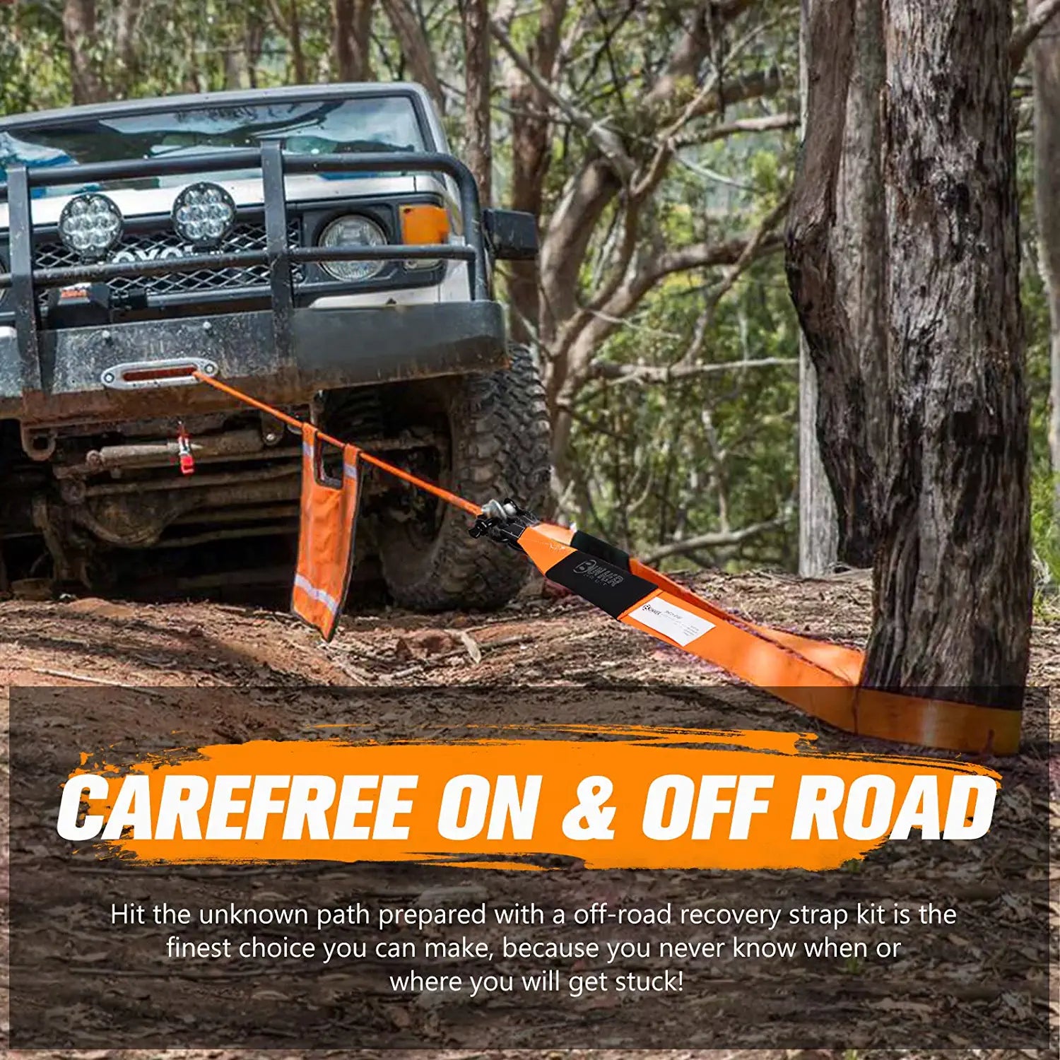 • Heavy Duty Tow Strap: Made of durable UV water-resistant polyester webbing, our recovery strap has a massive 30000 lbs tested strength. And it can withstand extreme loads and extreme temperatures (-40° F to 215° F). Recover your vehicles that are in tough situations such as snow, water, mud or sand.