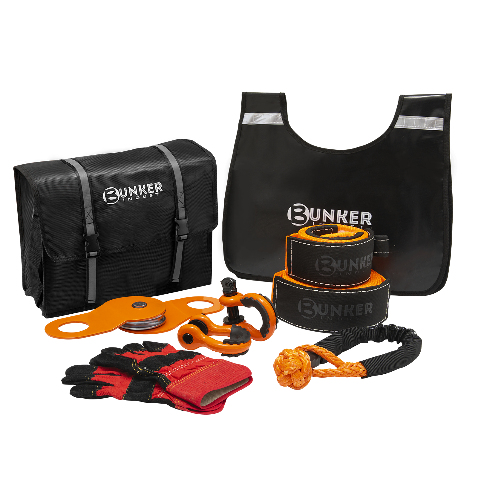 • Comprehensive & Flexible: This BUNKER INDUST recovery kit is complete with everything--- gloves and a winch dampener, a snatch block as well as 2 snatch straps, bow shackles and a soft shackle for flexible and alternative use.