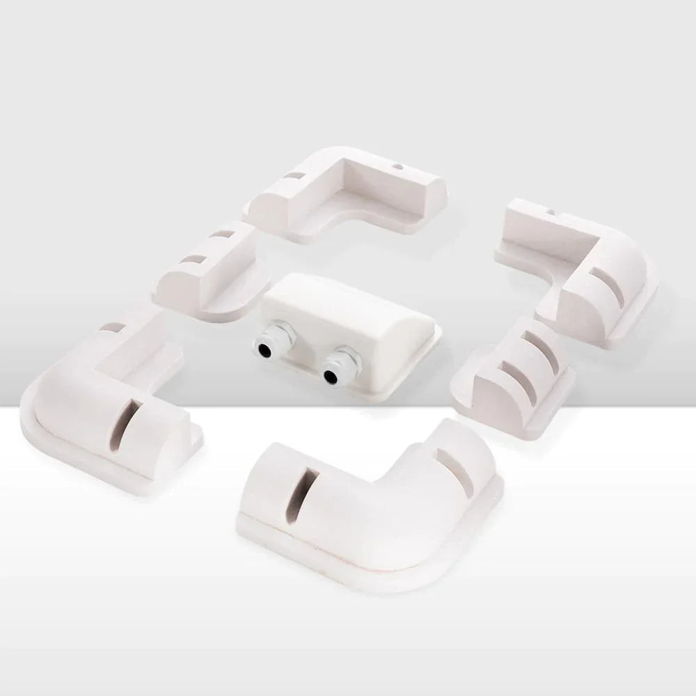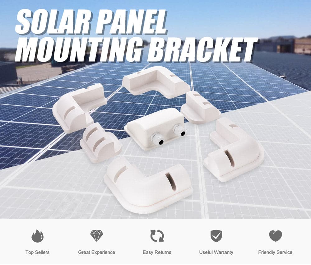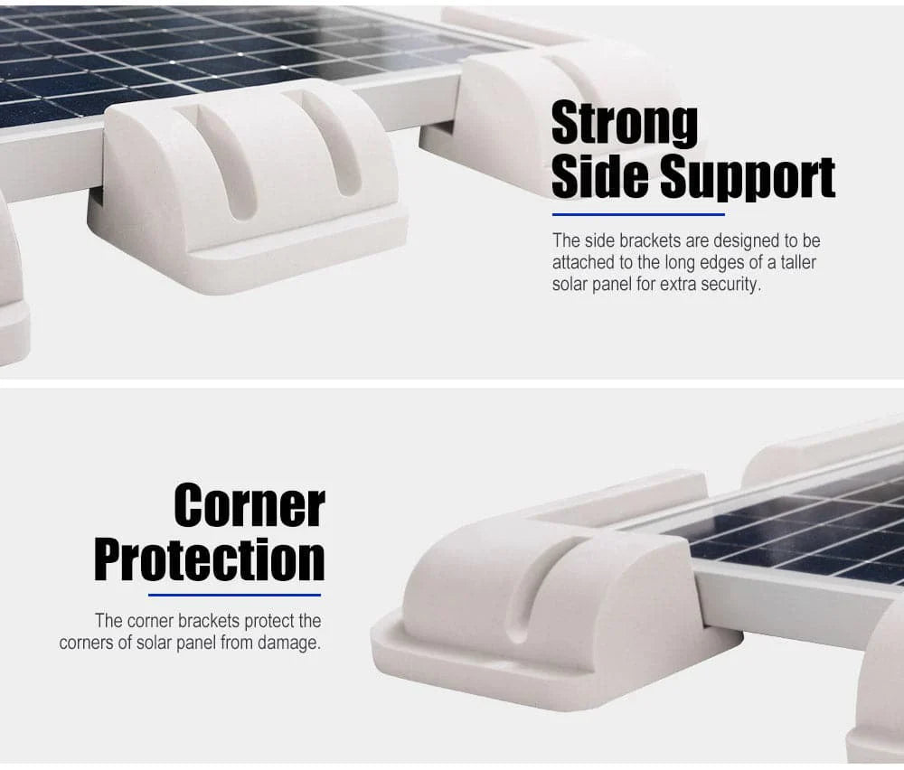- Set of 4 universal solar panel corner mounts, 2 Solar Side Mounts with 1 Waterproof Solar cable block