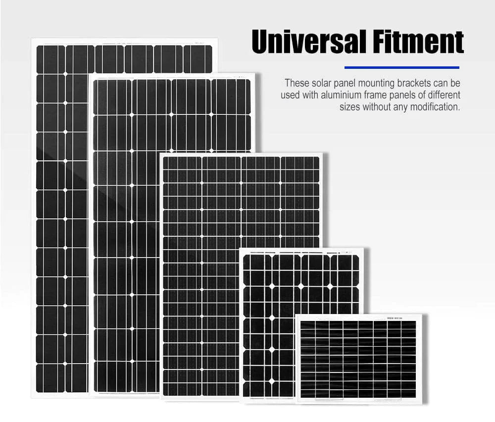 - Universal Fitment: These solar panel mounting brackets can be used with aluminium frame panels of different sizes without any modification.