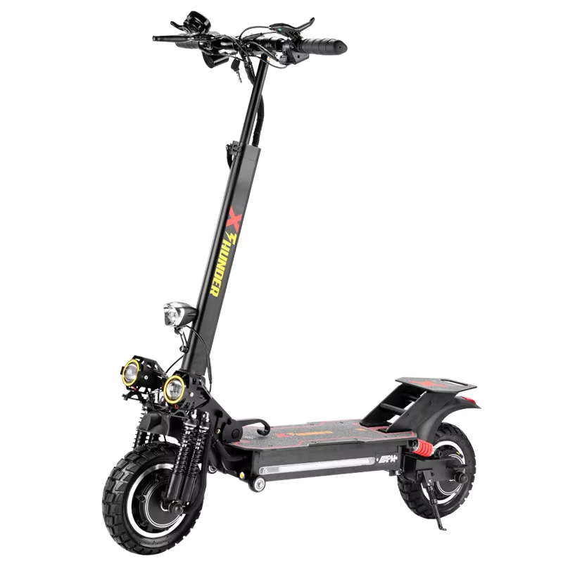 - Specific configuration: 10-inch wide off-road tires, aluminum alloy wheels, front and rear disc brake system, integrated folding frame, four shock absorbers in the front, dual shock absorbers in the rear, support switching between single and dual motor drives, maximum speed of 60, front dual spotlights, running lights, LCD meter, taillight brake, front and rear lighting