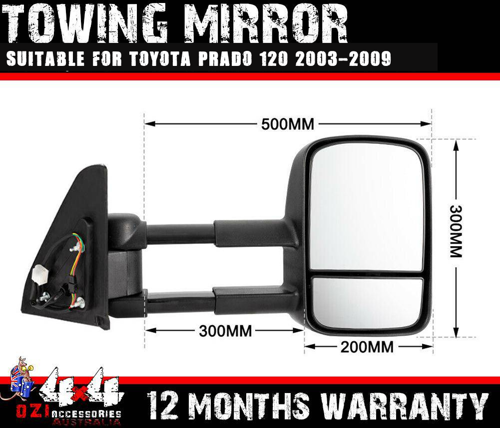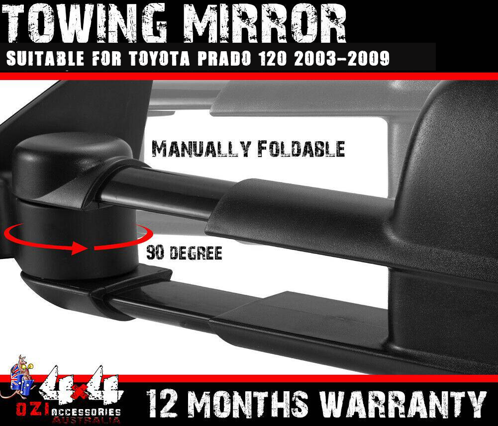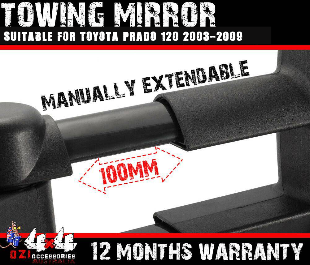 Extendable Towing Mirror Suitable For Toyota Land Cruiser Prado 120 Series (Non Blinker)