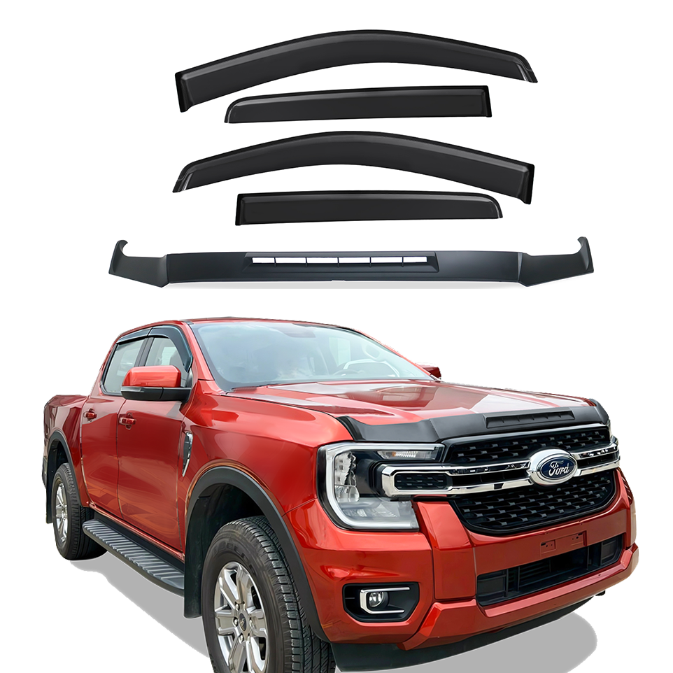 Bonnet Protector + Weather Shields Window Visors Suitable for Ford Ranger
