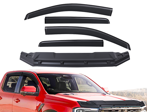 Bonnet Protector + Window Visors Weather shield Suitable for Ford Ranger Raptor