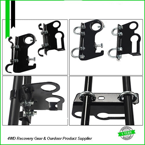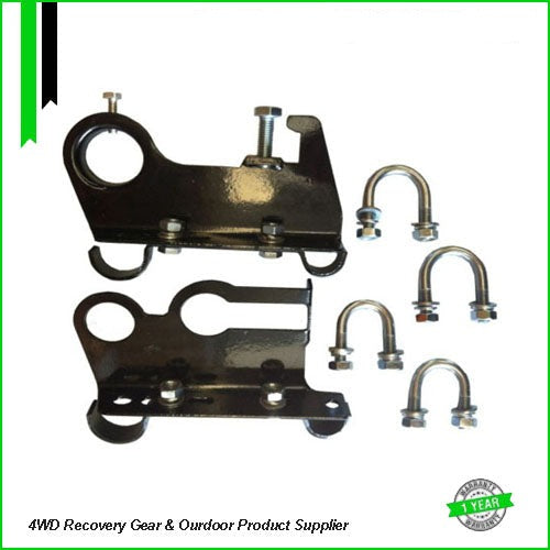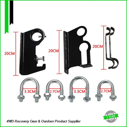 Secure your hi-lift jack and shovel to your roof rack with this complete mounting kit, It comes with Extra U Bolts to suit any roof rack & Comes with Fixed brackets to suit 190mm bar roof racks.