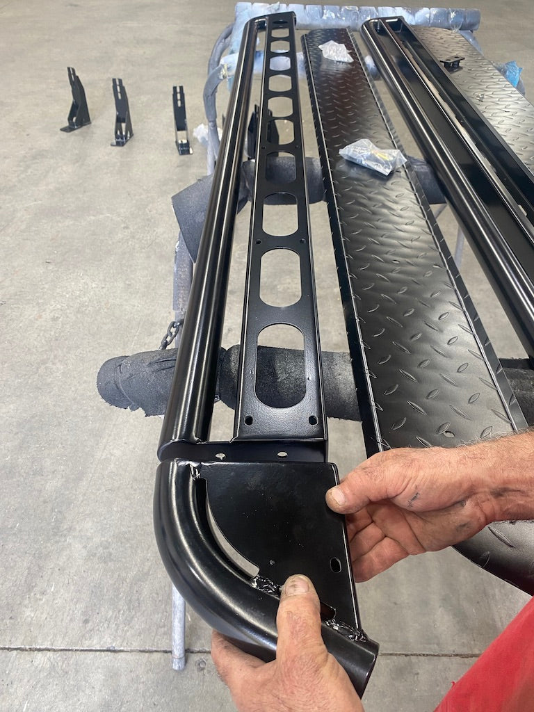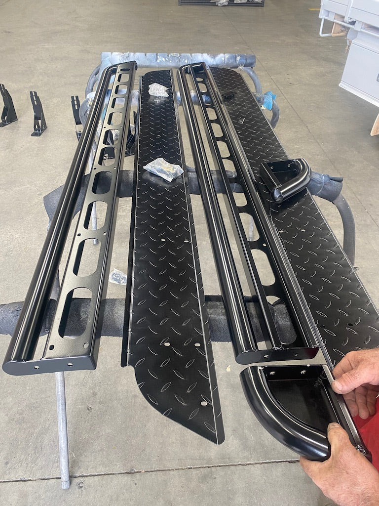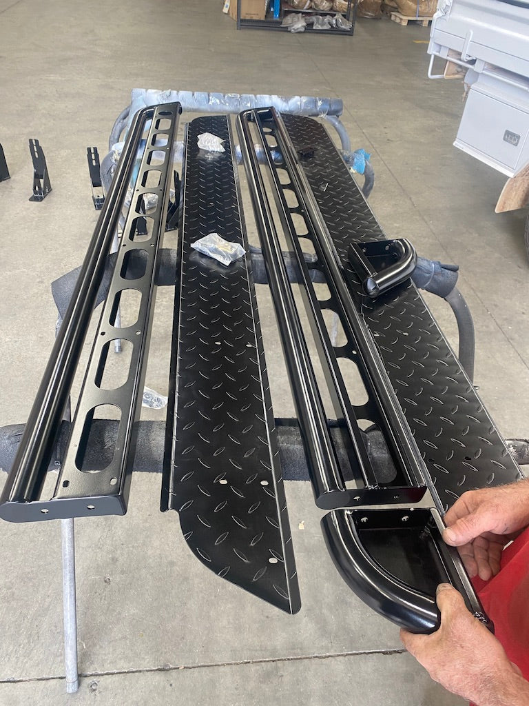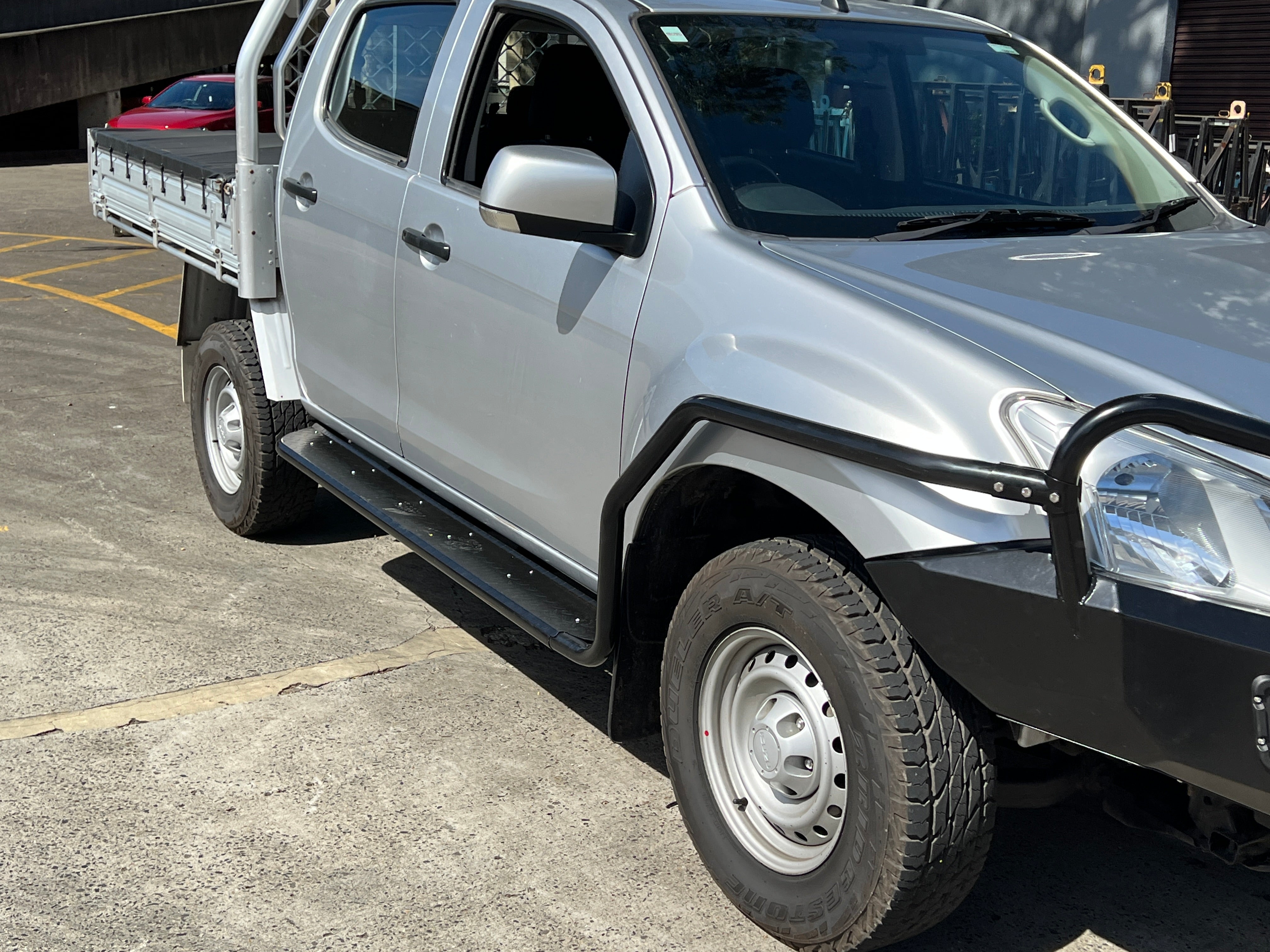They have been designed to fit on any Dual Cab UTE they bolt on to the chassis just like every other slider on the market. The Steps have arms which move to bolt anywhere on to the chassis where you would like to position the arms, they bolt on to the side steps instead of the old design of being fixed. They allow 4x4 Goers to choose the place that suits them to locate the arms with same design of nut and bolt which go above and below the chassis with a plate of steel on the other side of the chassis. which lock the sidestep on to the chassis the brush bars are exactly the same as other rock sliders on the market they do come longer the reason being this is that you can install on any Bullbar on the market as every Bullbar is unique and the loops are sometime closer to the vehicle or some time further out away from the vehicle the Brush bars always need cutting to the desired position to lock with the Bullbar.