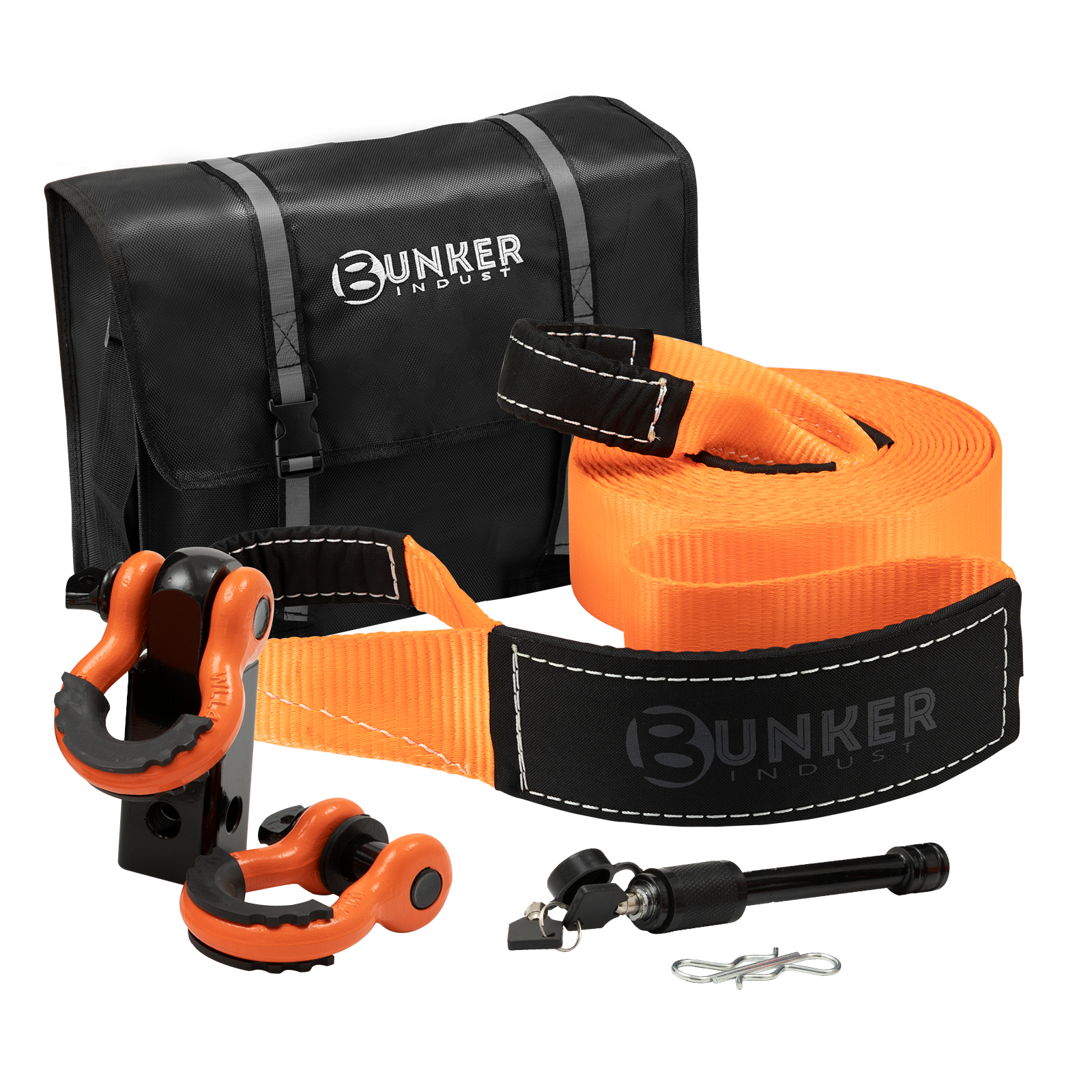 • Comprehensive & Flexible: This BUNKER INDUST recovery kit is complete with everything--- a snatch strap, a pair of bow shackles, a hitch receiver and a hitch lock for flexible use.