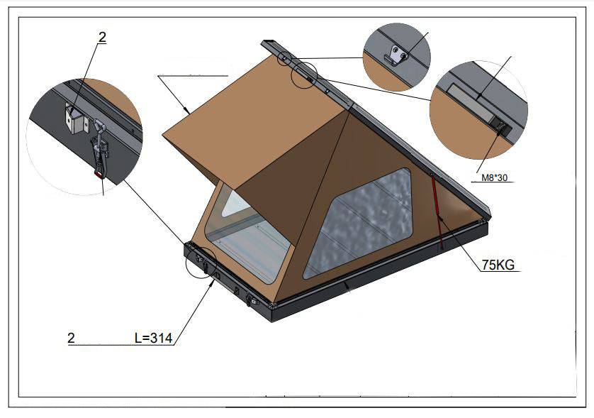2 mounting rails underneath the tent for easy installation. Mounting brackets included.