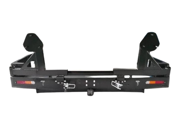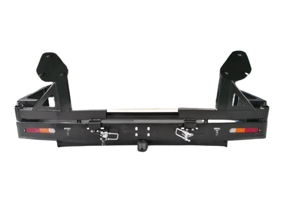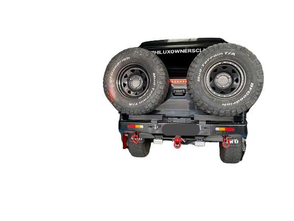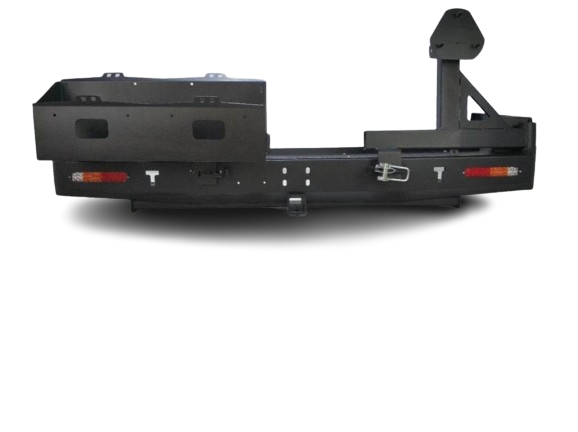 Rear Wheel carrier & Dual Jerry Can Holder Suitable for Toyota Hilux SR-SR5 From 2005 -2015 Full Rear bar replacement original rear bar and Tow bar Included 1 Piece 1 Unit. Original Rear Plastic Bar & Tow Bar will need to be removed to install Towing capacity is 1.5 Ton will need to remove the capping on the Tow hitch on the Rear bar, Comes with Led Tail Lights, and Two Swing Arm’s with a Dual Jerry can Holder it’s your choice to install this or you can have two tyres on the back or one spare tyre and a jerrycan' the choice is yours Professional Installation Is required.