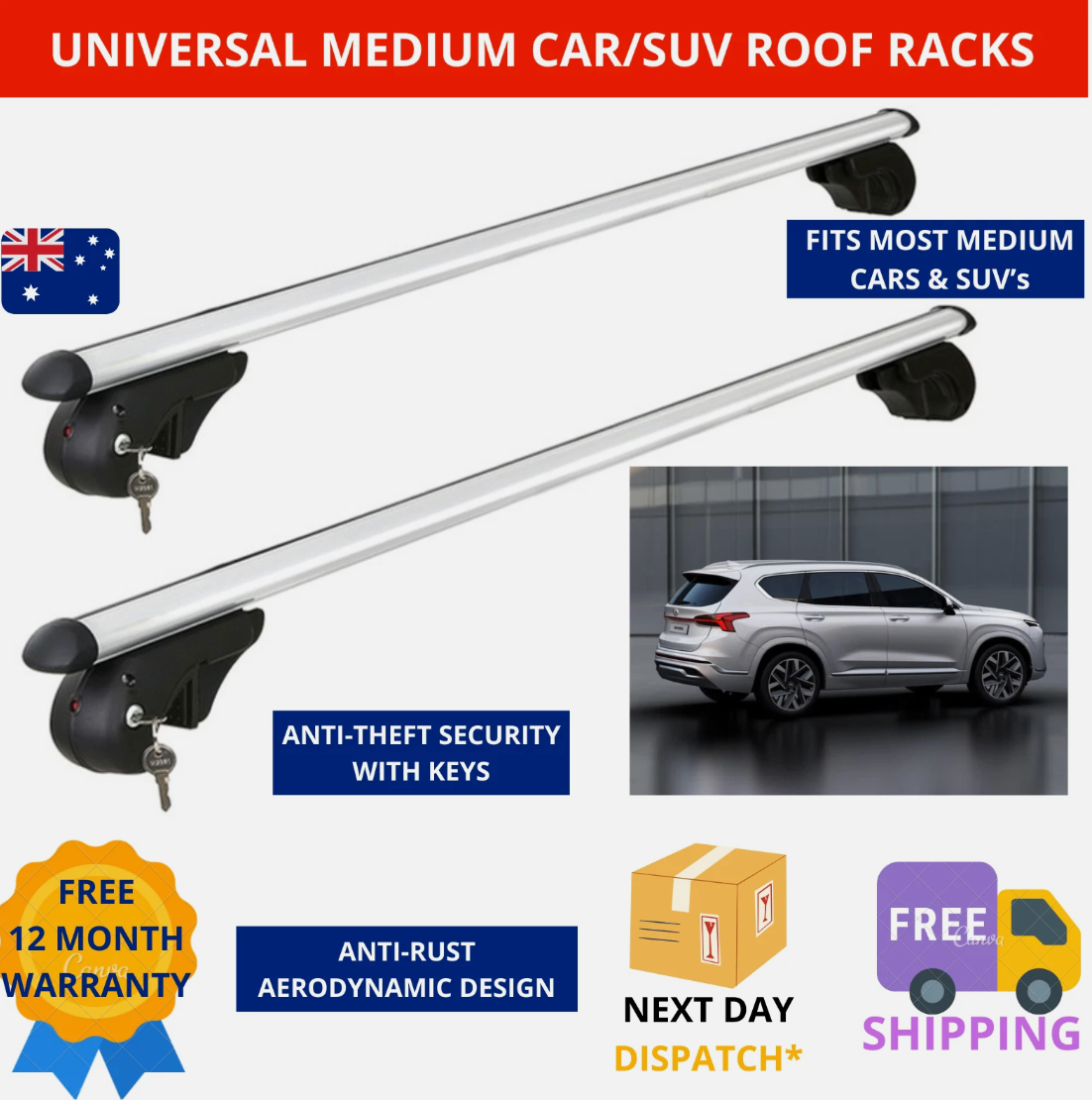Universal Roof Racks Cross Bars Medium Car SUV Rails Rooftop Carrier Clamp Pair