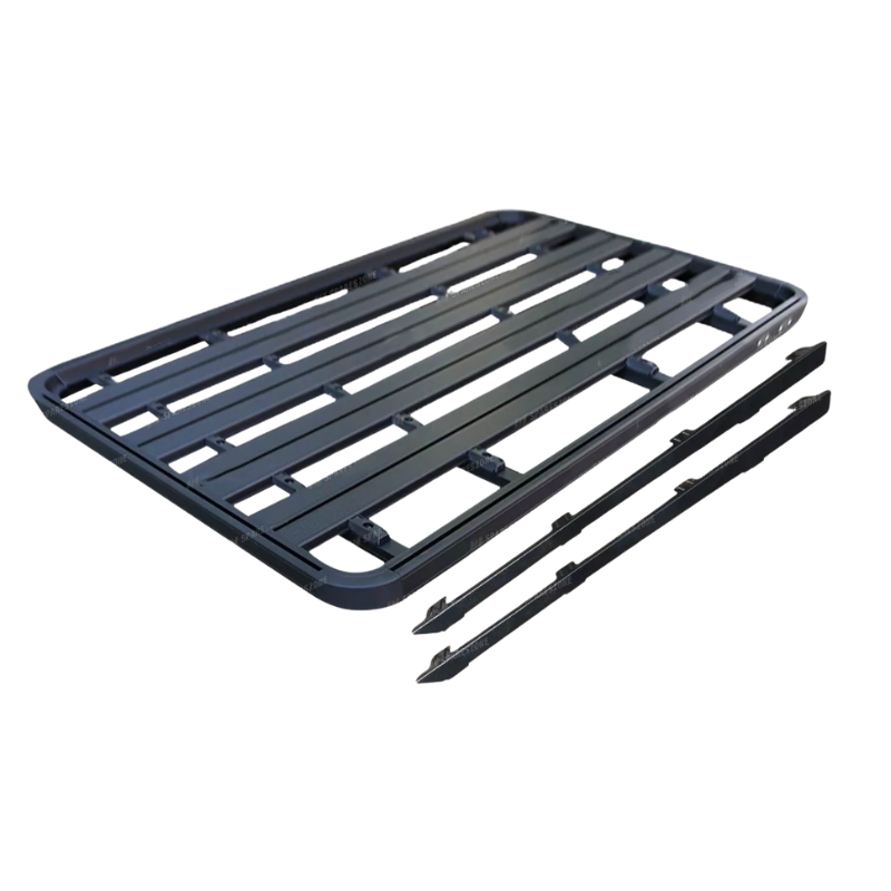 OZI4X4 Roof cages are specially designed for Suitable For Toyota Landcruiser Models . This roof cage is durable and useful at the same time this type of racking is good for storing luggage when going off road while also using for trade work type, being powder coated and in black they are Sit low about 80mm of the Roof of the vehicle this being good as if your still in town and shopping around its very useful getting into car parks without damaging the roof cage not like some of our competitors. Which sit very high off the roof. This Backbone system, which mount on the rails this also allows a lot of weight being transferred around the cage instead of conventional roof racks which only allow 80kg maximum. Our Roof cages allow 350kg to 500kg weight. A person can easily walk on Top of the roof Cage without damaging the roof, being powder coated in black allow long life for the roof cage, many uses you can mount your off road farm jack on one side while on the other side your awning, sleeping tent on the roof, even your Hunting spot lights.