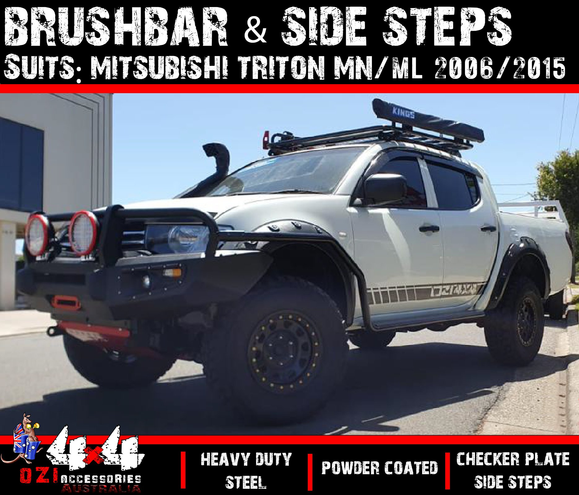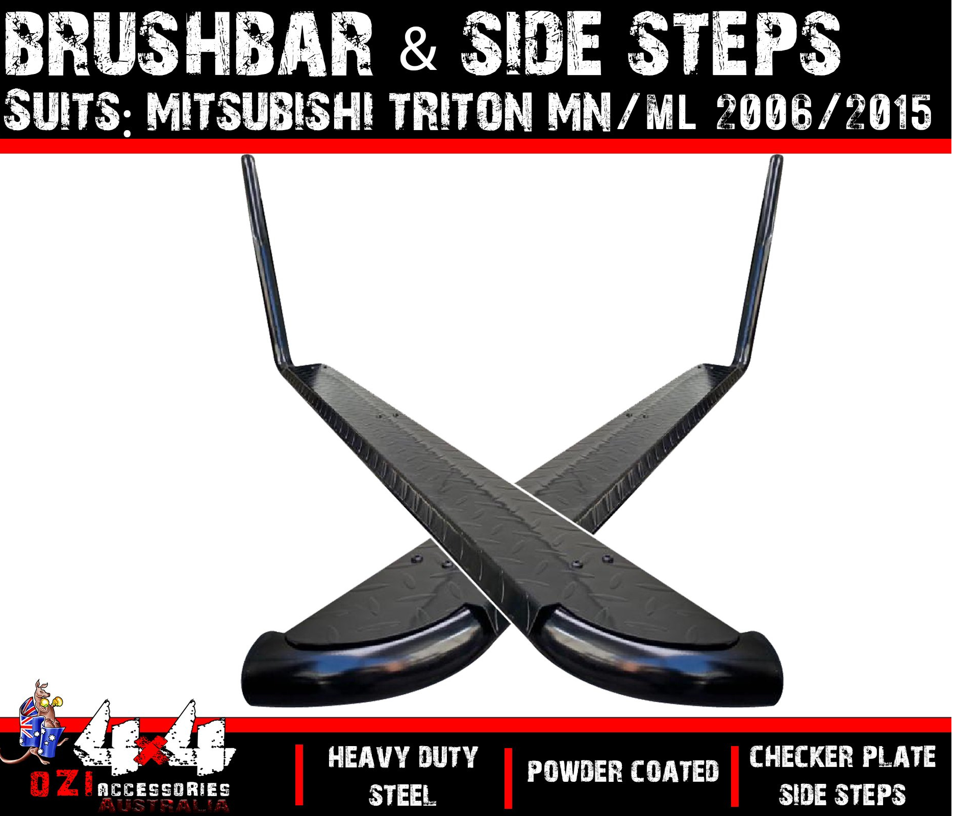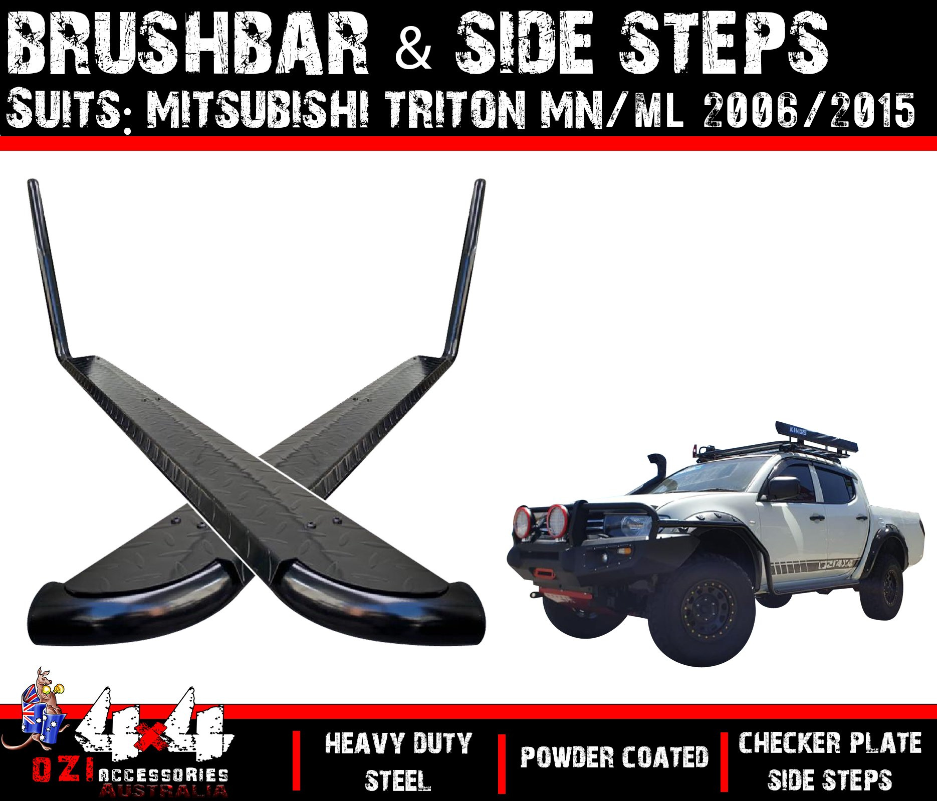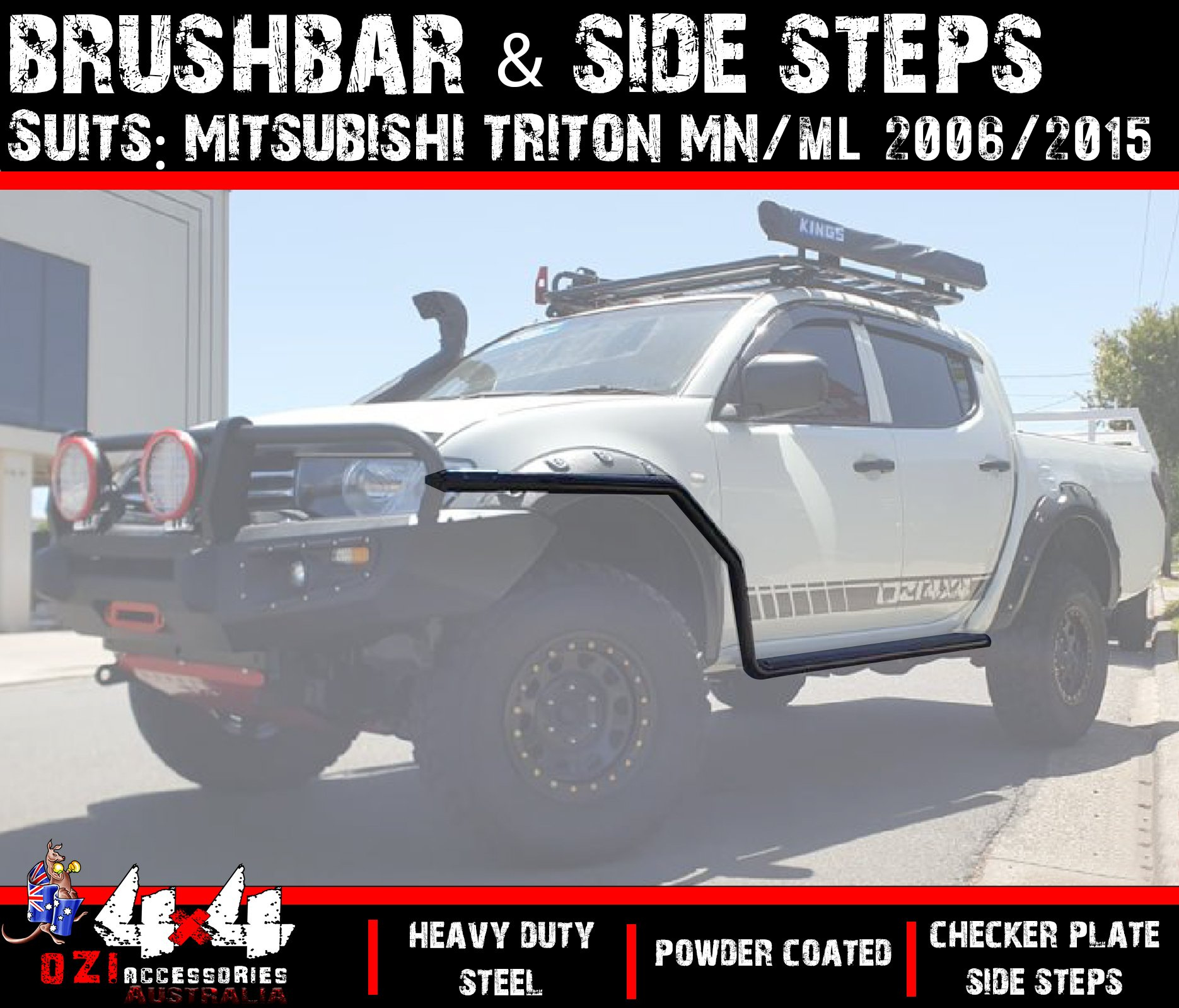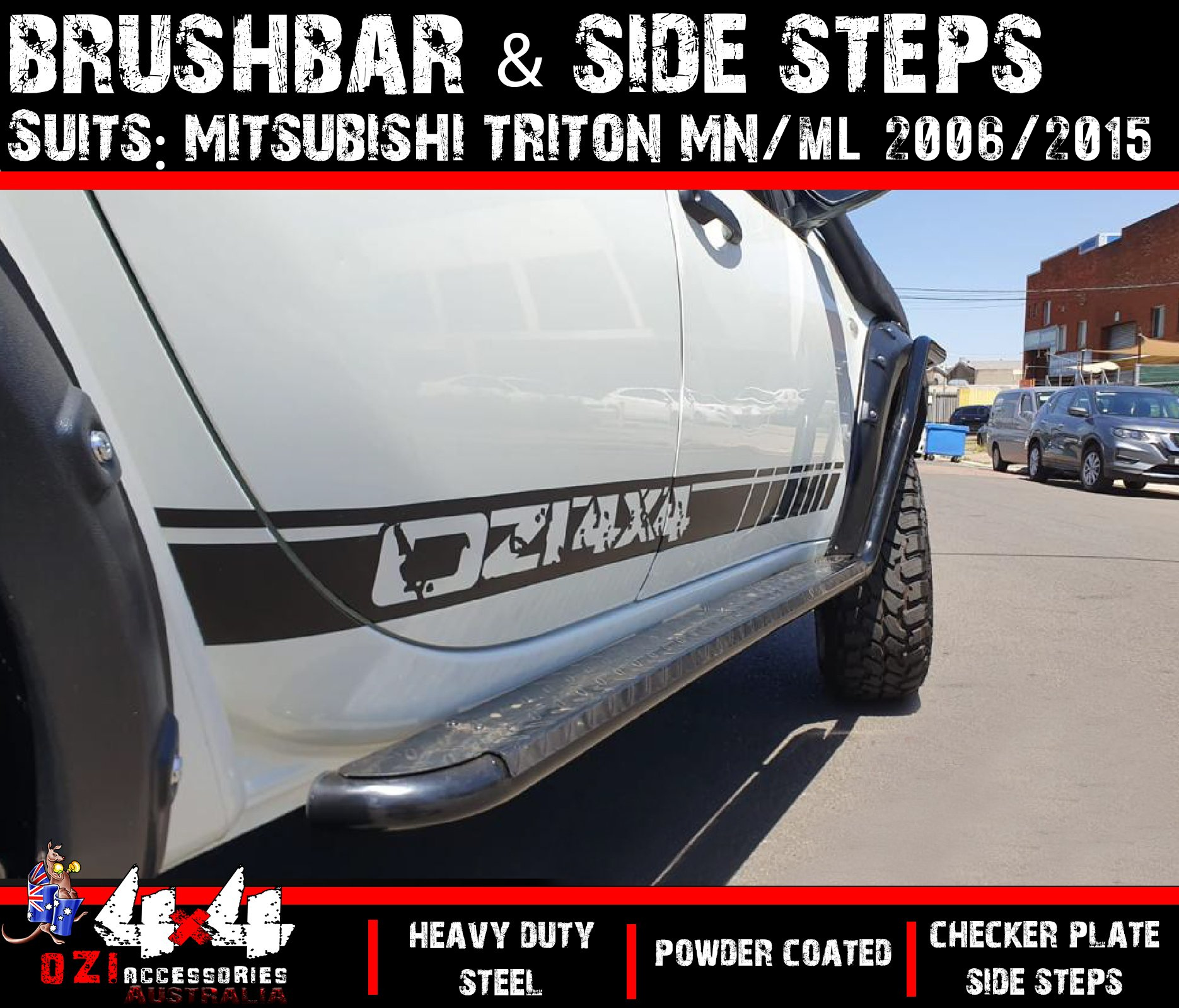 Sidesteps + BrushBar Suitable For Mitsubishi Triton ML/MN/MQ/MR Dual Cab / Space Cab 2006+