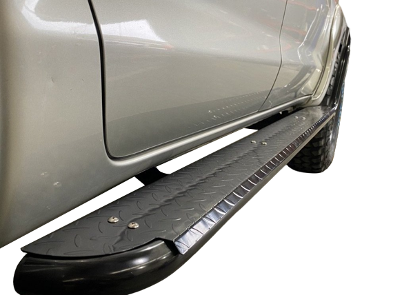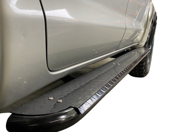 They have been designed to fit on any UTE they bolt on to the chassis just like every other slider on the market. The Steps have arms which move to bolt anywhere on to the chassis where you would like to position the arms, they bolt on to the side steps instead of the old design of being fixed. They allow 4x4 Goers to choose the place that suits them to locate the arms with same design of nut and bolt which go above and below the chassis with a plate of steel on the other side of the chassis. which lock the sidestep on to the chassis the brush bars are exactly the same as other rock sliders on the market they do come longer the reason being this is that you can install on any Bullbar on the market as every Bullbar is unique and the loops are sometime closer to the vehicle or some time further out away from the vehicle the Brush bars always need cutting to the desired position to lock with the Bullbar.