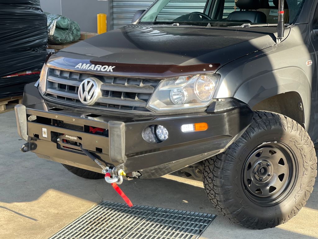 Winch Compatible. Black powder coat for longer durability LED Fog lights LED parkers and indicator lights installed Extra heavy duty steel Underbody skid protection plate Full mounting, installation kit Separate Winch bracket Single antenna mount Complete bumper replacement Australian owned and operated Australian stock