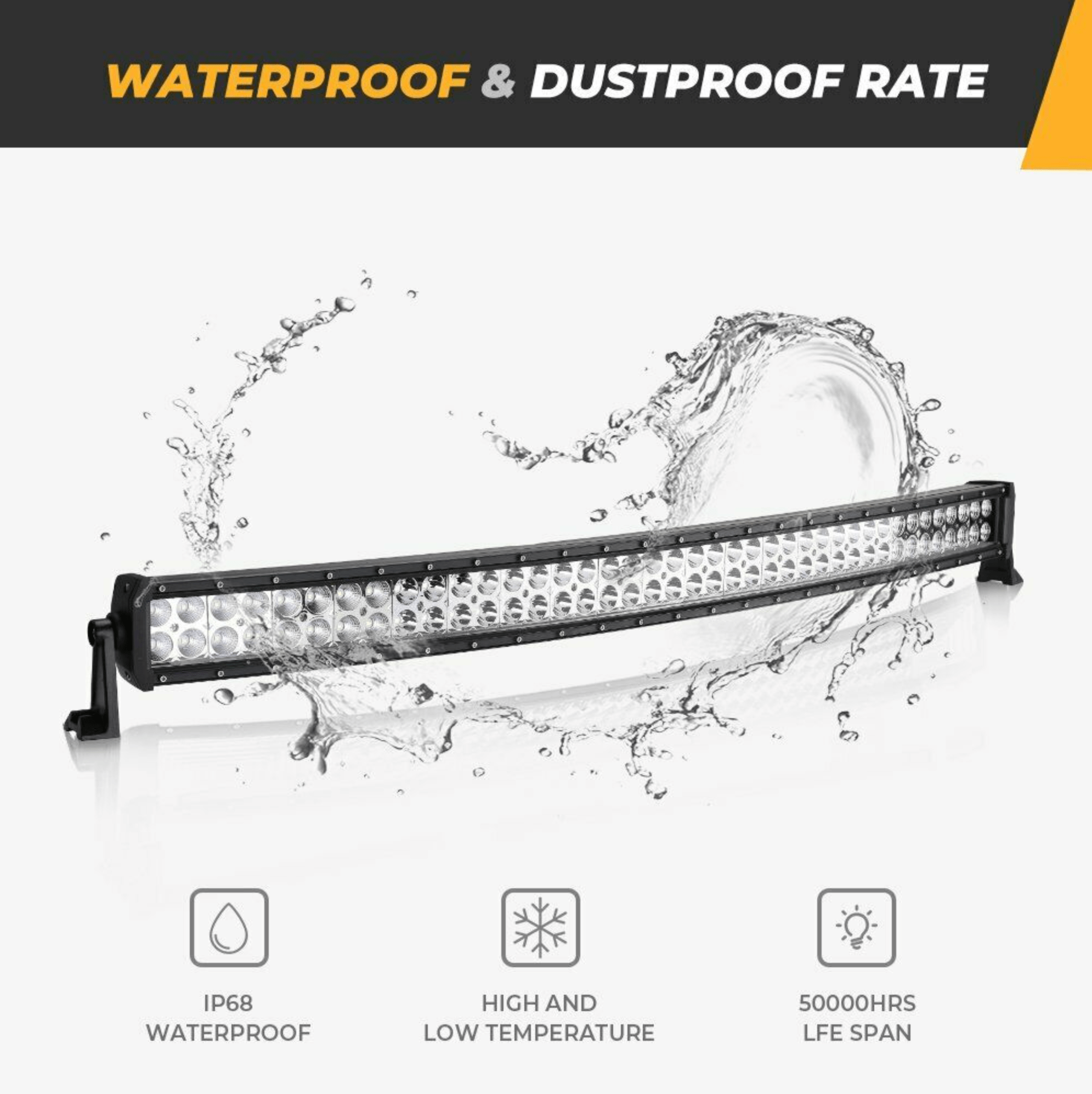 • The curved led light is IP68 waterproof standard. It can withstand extreme temperatures. With the approximate life span expected is 50000 hours.